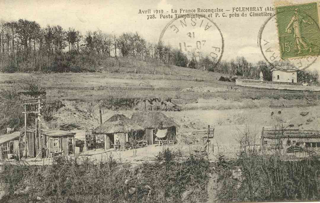 En Avril 1919 près du cimetière : un poste téléphonique provisoire et son P.C.