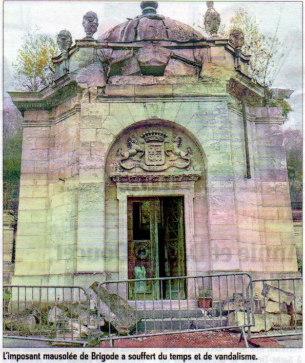 C'est à la suite de ces accords que M. le Comte de Brigode fit édifier, à l'extrémité du cimetière, une sépulture particulière comprenant : Chapelle avec autel privilégié, et crypte avec caveaux à laquelle on accède par un escalier tournant. Au-dessus de la porte d'entrée un blason porte les armes suivantes du propriétaire, originaire de la Flandre Française : 3éme branche de la famille : "Écartelé aux 1 et 4 d'or à trois étoiles mal ordonnées de sable ; aux 2 et 3 d'azur, au cygne d'argent, l'écartelé entouré d'une bordure de gueules."